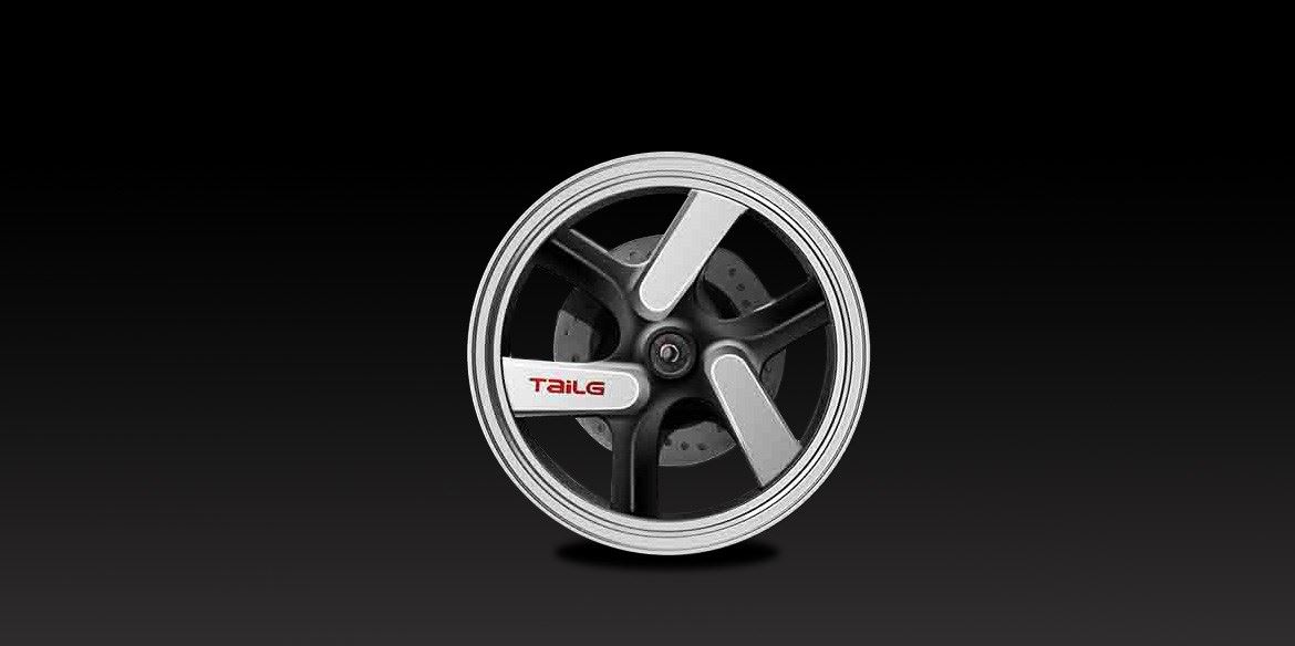 材質(zhì)選用鋁合金,堅(jiān)固又輕盈,黑銀雙色搭配使得工業(yè)設(shè)計(jì)的精髓在車轂蓋中回環(huán)流轉(zhuǎn)。在三幅旋轉(zhuǎn)的位置一面,放上TaiLG的紅色logo,醒目張揚(yáng)。